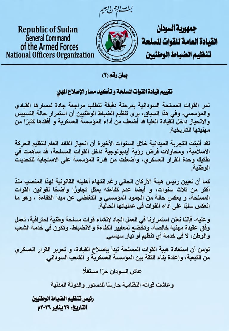 4. وحدة القيادة والسيطرة: ضمان تناغم العمل بين القوات المسلحة وقوات الشرطة و جهاز المخابرات العامة تحت قيادة وطنية موحدة.
